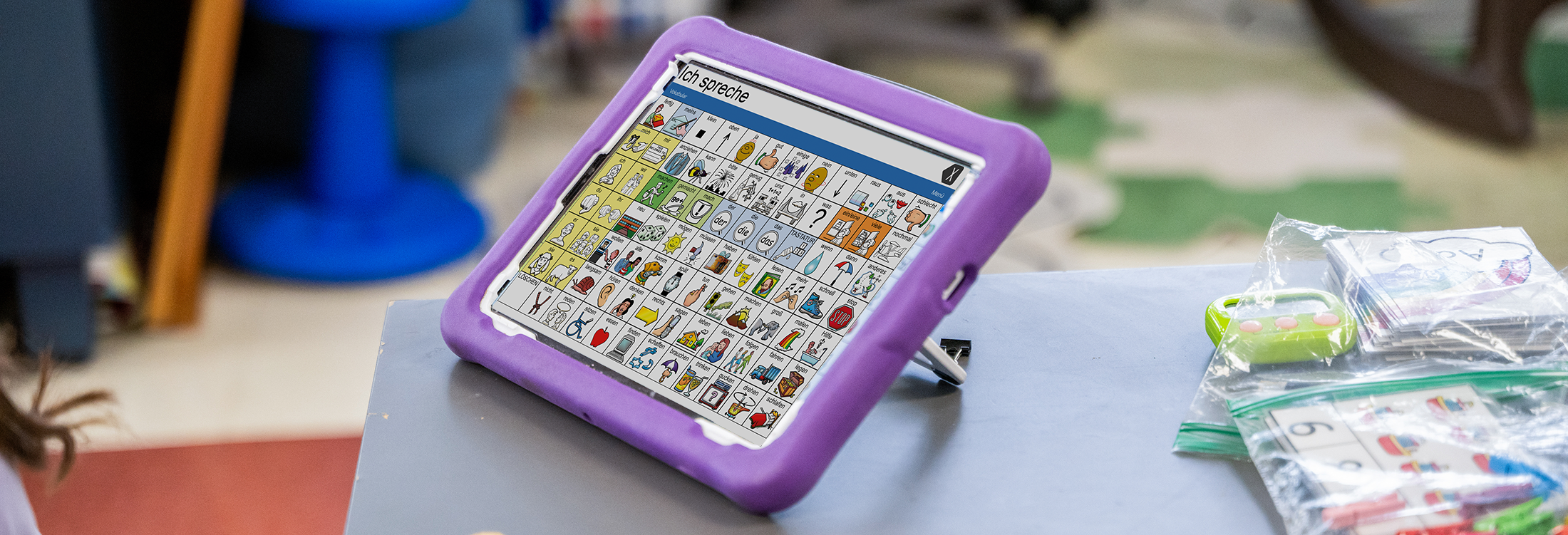 Communication aids are used by both children and adults. Tailored to the communication skills and needs of the person concerned, our tools can be adapted to individual requirements. The possible applications range from “speaking typewriters” to devices with vocabularies to aid grammatically correct language usage, consisting of several thousand stored messages.