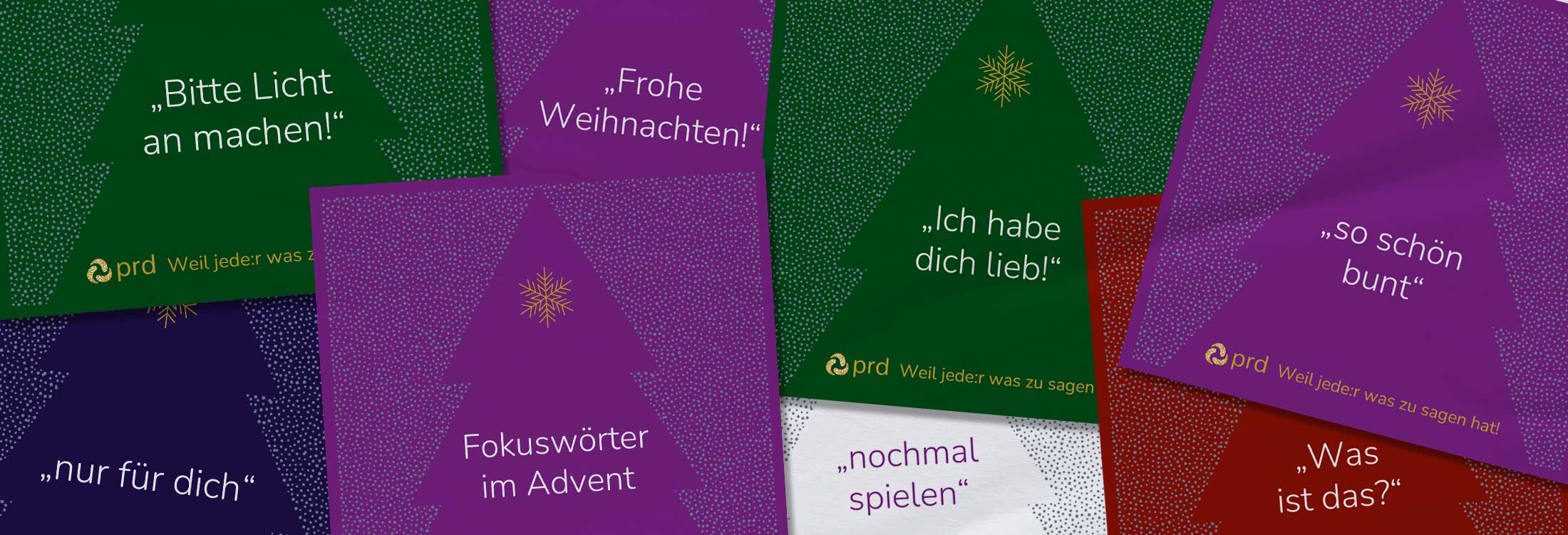 Für den Adventskalender haben wir für jeden Tag eine Wortkombination ausgewählt und schlagen vor, dass diese Aussage einen Tag lang möglichst oft von den natürlich-sprechenden Menschen benutzt wird. Wenn dabei auch noch die Kommunikationshilfe zum Einsatz kommt, ist das super!!! Aber auch das „ganz normale“ Aussprechen kann schon einen Modell-Charakter haben, besonders wenn begleitend dazu eine entsprechende Wortkarte gezeigt wird. (s. Downloads)