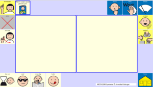 Kein Problem! Unterhalb jeder Symbolfolge ist ein freies Feld, in dem die Übersetzung eingetragen werden kann. So können auch Familienmitglieder und Freunde, die eine andere Sprache sprechen, der Person mit dem Talker beim Kommentieren des Spiels helfen.