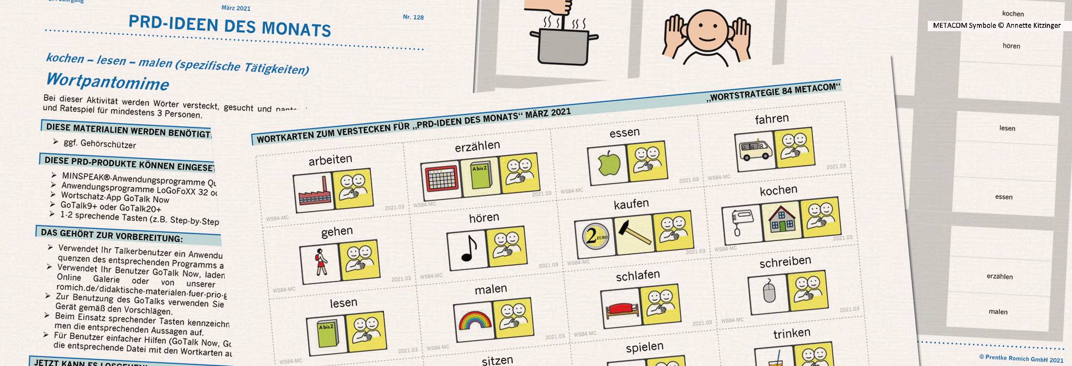 Die „PRD-Ideen des Monats“ sind ein kostenloser Service der Prentke Romich GmbH. Nutzung auf eigene Gefahr. Die Prentke Romich GmbH übernimmt keine Haftung für Schäden irgendeiner Art, die aus der Befolgung der hier gemachten Angaben resultieren könnten. Das Eintragen in den Newsletter erfolgt hier.