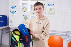 Mit dem verstellbaren Umhängeband kann der Anybook Pro um den Hals getragen oder an auch der Tafel befestigt werden. Dank verstellbarer Länge und Sicherheitsverschluss, der sich bei zu starkem Zug von selbst öffnet, eignet sich das Band für Kinder genauso wie für Erwachsene.