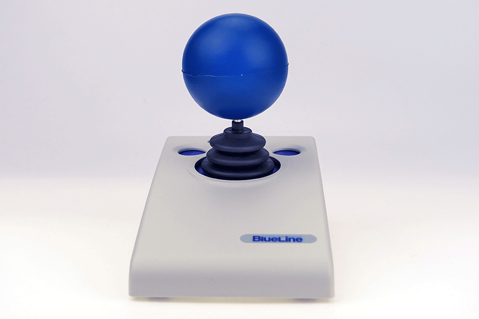 Der Joystick bietet drei Tasten und zwei Tasten-Buchsen für externe Schalter, die alle individuell angepasst werden können. Die Cursor-Geschwindigkeit kann in vier Stufen geregelt werden. Das Auslösen eines Feldes kann neben dem Klicken auch durch Verweilen (Dwell) geschehen.