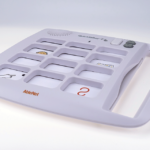 Der QuickTalker 12 FT von AbleNet ist eine einfache, transportable Kommunikationshilfe mit Sprachausgabe. Er bietet eine besonders geringe Auslösekraft. Das „FT“ steht für „Feather Touch“.