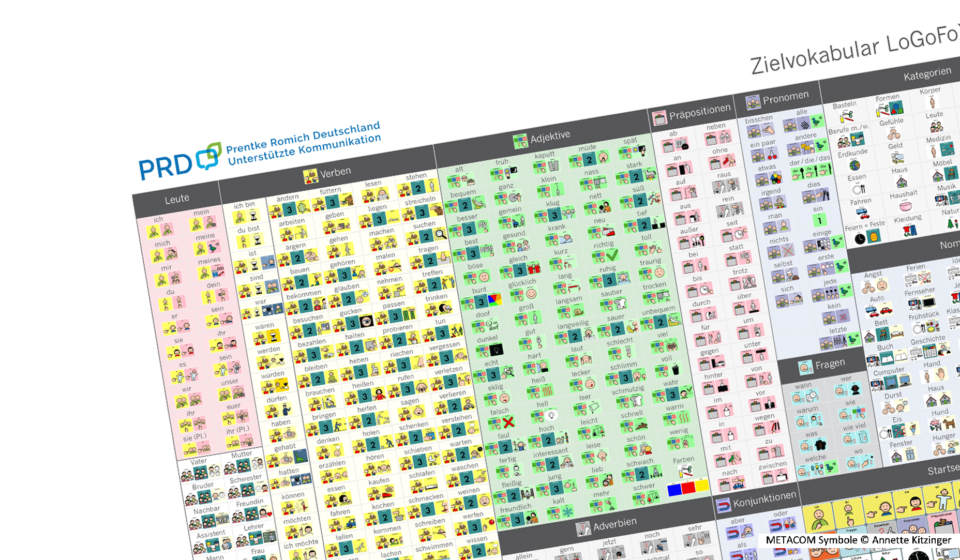 Mit dem Poster als Orientierungshilfe haben Lehrer und Therapeuten ein schnelles und praktisches Nachschlagewerk zur Hand, um mit dem Talkerbenutzer einen vielseitigen und ausgewogenen Wortschatz zu erarbeiten.